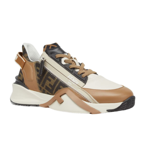 נעלי Fendi Flow מעור חום וז'קארד חום עם דוגמת FF