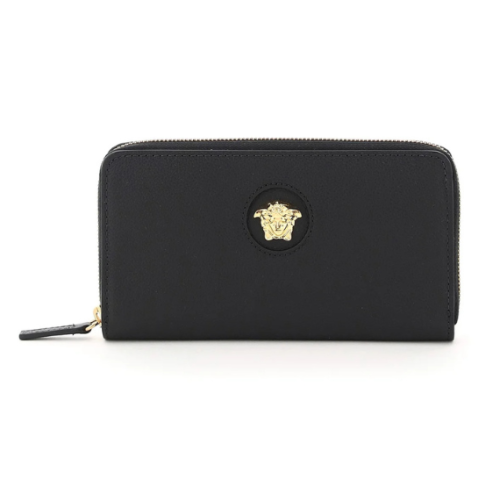 ארנק יוקרתי מבית Versace, בעיצוב אלגנטי ומאובזר בלוגו האייקוני של המותג. פונקציונלי ונוח לשימוש יומיומי, עם תא ראשי מרווח ורוכסן בטיחותי.
