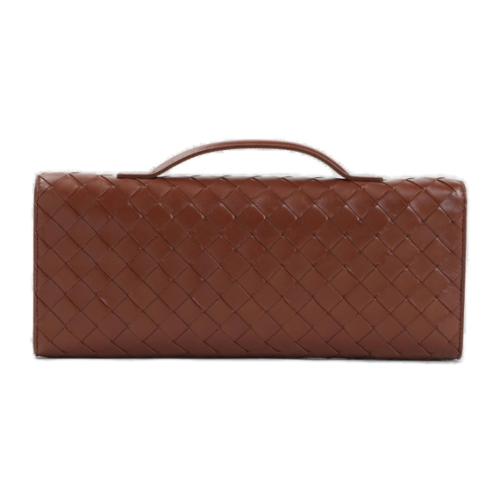 תיק קלאץ' יוקרתי מבית Bottega Veneta בעיצוב Intrecciato האיקוני, עשוי עור נאפה רך בשילוב עור עגל איכותי, עם רצועת מתכת דקורטיבית שמשלימה את המראה האלגנטי. שילוב מושלם של אלגנטיות מודרנית ועבודת יד איטלקית.