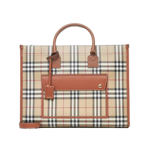 תיק טוטה מעוצב ומרשים מבית Burberry, המשלב בין עיצוב קלאסי לפרטים יוקרתיים. התיק מתאפיין בצורתו המרשימה והאלגנטית, המושלמת ללוקים מודרניים וטרנדיים. העיצוב הנקי והמחושב הופך את התיק לפריט מושלם לשימוש יומיומי או לאירועים מיוחדים.