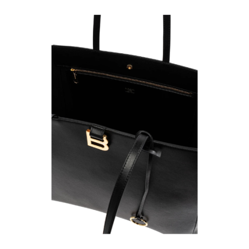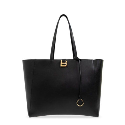 תיק טוטה יוקרתי בעיצוב מודרני ונשי מבית Balenciaga. עשוי עור עגל חלק ואיכותי, עם בסיס מעוגל המזכיר את צורת ה-Hourglass האייקונית של המותג. כולל שתי ידיות עליונות לנשיאה ביד או על הכתף, סגירה מגנטית, תא פנימי מרופד עם כיס רוכסן, ותוספת של מחזיק מפתחות נשלף עם לוגו B מוזהב.