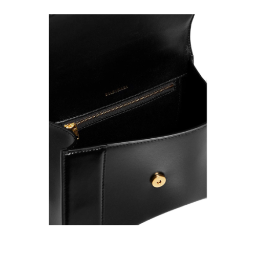 תיק יד בעיצוב שעון חול האייקוני של Balenciaga, בגודל Small. עשוי עור עגל איכותי עם גימור מובלט, כולל ידית עליונה ורצועת כתף מתכווננת ונשלפת לנשיאה נוחה. התיק כולל סגירה מגנטית, תא פנימי מרופד וכיס אחורי חיצוני.