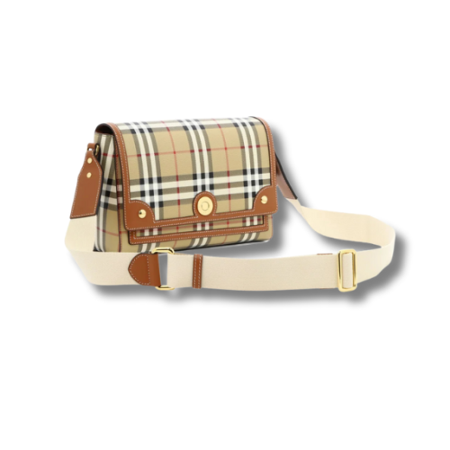 תיק Note Checked Crossbody של Burberry משלב עיצוב קלאסי עם פונקציונליות מודרנית, בהשראת הארכיון האייקוני של המותג. תיק זה מציג את הדוגמה המשובצת המפורסמת של ברברי, לצד גימורים יוקרתיים וחומרי גלם איכותיים.