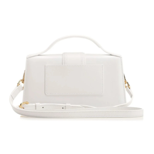 לוחית לוגו מוזהבת עם הכיתוב "Jacquemus", מוסיפה נופח של יוקרה.