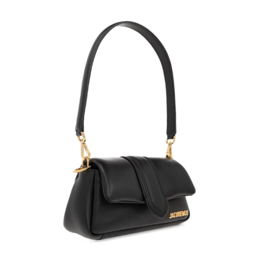 לוחית לוגו מוזהבת עם הכיתוב "Jacquemus", מוסיפה נופח של יוקרה.