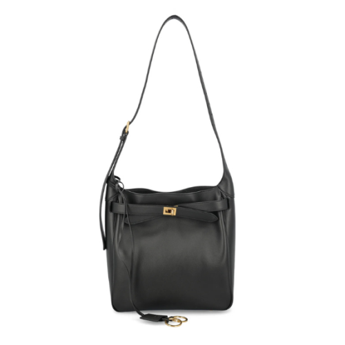 תיק הובו קטן ומעוצב מבית Balenciaga, המשלב בין עיצוב קלאסי לפרטים יוקרתיים. התיק מתאפיין בצורתו הרכה והזורמת, המושלמת ללוקים עירוניים וטרנדיים. העיצוב הנקי והמחושב הופך את התיק לפריט מושלם לשימוש יומיומי או לאירועים מיוחדים.