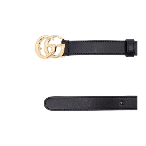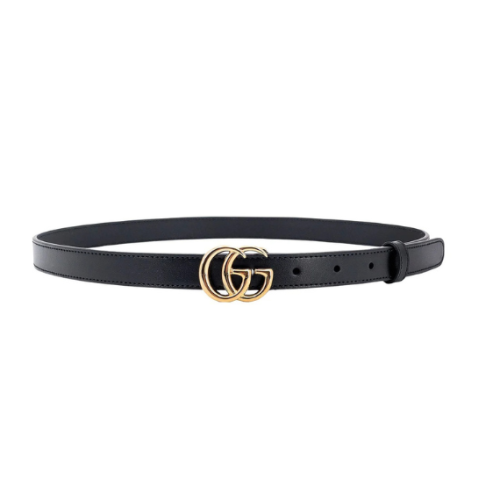 חגורת Gucci יוקרתית בעיצוב GG Marmont אלגנטי, עם רצועת עור דקה ואבזם מתכתי בצורת GG כפול בגימור מבריק. עשויה עור איכותי ומציעה שילוב מושלם של סטייל איטלקי קלאסי ונוחות. פריט מושלם להשלמת מראה מתוחכם ואלגנטי