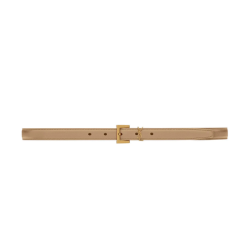 חגורה אלגנטית מבית Saint Laurent, עשויה עור איכותי בעיצוב צר ומעודן. מתאפיינת באבזם מתכתי יוקרתי בצורת מונוגרמת YSL האייקונית. פריט קלאסי ונשי, המעניק נגיעה של תחכום וסטייל לכל מראה