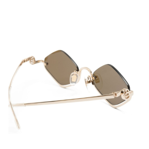 משקפי שמש יוקרתיים מבית Gucci Eyewear, בעיצוב מסגרת גיאומטרית מודרנית ומרשימה. מתאפיינים בעיטור לוגו Double G אייקוני בצידי המסגרת, המשלב תחכום וסטייל איטלקי. עדשות איכותיות להגנה מושלמת מהשמש, מושלמים להשלמת מראה אלגנטי ואופנתי