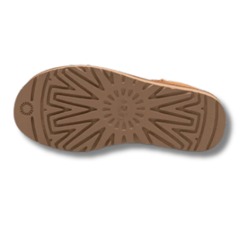 מגפי UGG בעיצוב Mini קלאסי עם סוליית פלטפורמה מודרנית וייחודית. עשויים זמש איכותי בגוון Chestnut חם ובעל גימור אלגנטי, עם בטנת צמר מלטפת לנוחות מרבית ולשמירה על חום. הבחירה המושלמת למראה אופנתי ונעים בימים קרירים