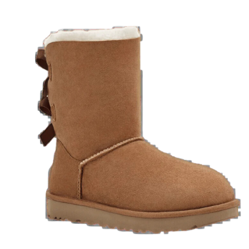 מגפיים קלאסיים ונשיים מבית UGG, בעיצוב Bailey Bow II הכולל סרטים מעוצבים בגב להשלמת מראה אלגנטי. עשויים זמש איכותי בצבע חום חם, עם בטנת צמר טבעי לנוחות מרבית ולשמירה על חום בימים קרים. שילוב מושלם של יוקרה ונוחות