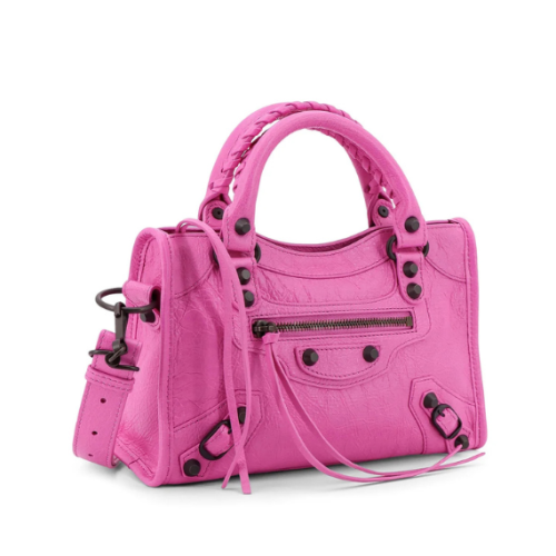 תיק מיני קומפקטי בעיצוב אייקוני של Balenciaga, עשוי עור טלה בטקסטורה ייחודית. כולל ידיות עליונות קלועות ורצועת כתף נשלפת ומתכווננת לנשיאה נוחה. התיק מצויד בכיס חיצוני עם רוכסן, כיס פנימי נוסף, וסגירת רוכסן עליונה.