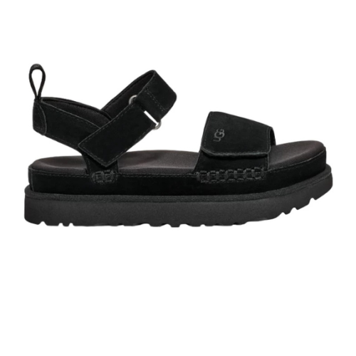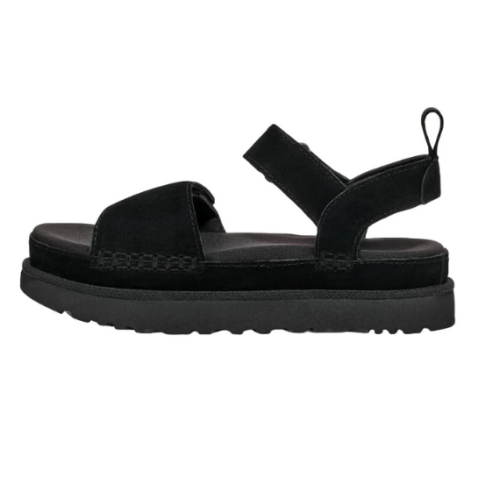 סנדלים יוקרתיים של המותג UGG מדגם Goldenstar, בעיצוב אלגנטי בגוון שחור קלאסי. עשויים מחומרים איכותיים עם רפידה מרופדת לנוחות מרבית ורצועות מתכווננות לתמיכה מושלמת. מתאימים לשימוש יומיומי וליצירת מראה אופנתי ונוח לכל אירוע