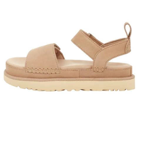 סנדלים אופנתיים ונוחים של המותג UGG מדגם Goldenstar, בגוון Driftwood טבעי ואלגנטי. עשויים מחומרים איכותיים עם רפידה מרופדת ורצועות מתכווננות לתמיכה ונוחות מרבית. מתאימים לשימוש יומיומי בקיץ וליצירת מראה קליל ומסוגנן